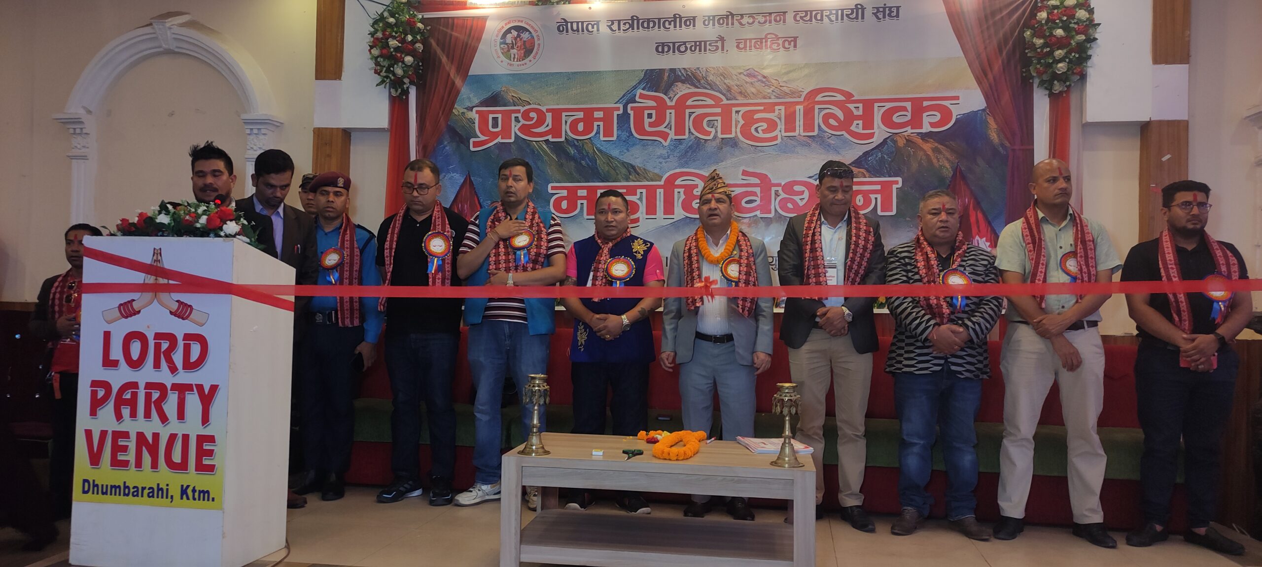 कार्यक्रमलाई नेपाल सरकारका भौतिक पूर्वाधार तथा यातायात मन्त्रि प्रकाश ज्वाला ज्युले रिबन काटेर दियोमा प्रजोलन गर्दै कार्यक्रमको उद्घाटन गरेका थिए । कार्यक्रममा उपस्थित सम्पूर्णलाई स्वागत मन्तब्य राख्ने क्रममा सल्लाहकार नबिन बुढाथोकीले महाधिबेशन भाद्र २५ गते सम्पन्न गर्ने भनिएता पनि प्रमुख अतिथि ज्युको समय अभावको कारण उहाँकै पर्खाइको लागी कार्यक्रम भाद्र ३१ गतेको सारेको बताए । उनले नेपाल अधिराज्य भर रहेका करिब ६-७ सयको संख्यामा रहेको डान्स रेष्टुरेन्ट तथा दोहोरीमा कार्यरत १० लाख भन्दा बढी पेशाकर्मीहरुको हकहितका निमित्त नेपाल रात्रीकालिन मनोरन्जन व्यवसायी संघ लागी परिरहेको बताए । बुढाथोकीले यति धेरैले रोजगार प्राप्त गरेको रात्रिकालिन व्यवसायलाई चौबिसै घण्टा संचालन गर्न पाउनु पर्ने राज्य संग माग राखेका छन् ।