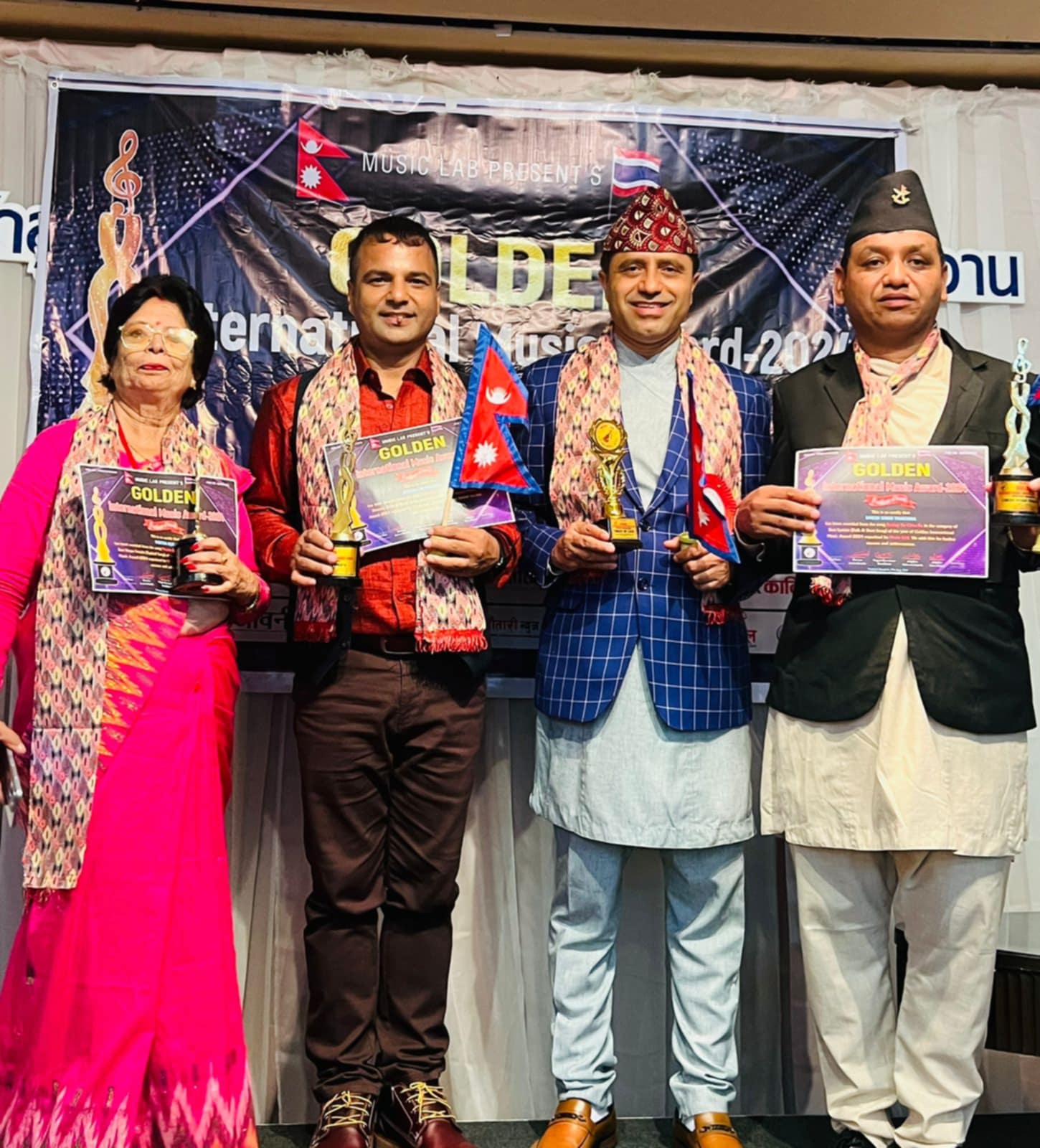 काठमाण्डौ । दार्चुला जिल्ला मार्मा गा .पा.- १ ताकुमा जन्मिएका लोक तथा दोहोरी गायक उमेश ठगुन्नाले थाइल्यान्डको बैंकमा आयोजित गोल्डेन अन्तर्राष्ट्रिय म्युजिक आवार्ड हात पार्न सफल भएका छन् । उनि बिगत निकै लामो समय यता नेपाली लोक तथा दोहोरी गीत संगीतको क्षेत्रमा क्रियासिल छन् । कलाकार उमेश बिकृतिजन्य गीत संगीतबाट टाढा छन् ।