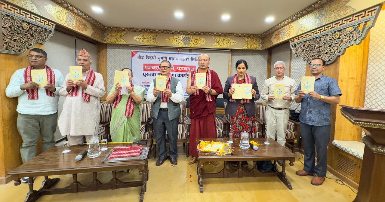 काठमाडौ । लेखक तथा अनुवादक बौद्ध विदुषी सुमति बज्राचार्यको पुस्तक विशुद्ध पञ्चस्कन्ध नै पञ्चबुद्ध पुस्तकको लोकार्पण भएको छ । उक्त कृतिलाई एक समारोह विच धर्मधर लामा वाँगचुक तपदेन,लुम्बिनी विश्वविद्यालयका पूर्व उपकुलपति डा. ह्रदयरत्न बज्राचार्य, भाषा आयोगका सदस्य सुरेश किरण मानन्धर,बरिष्ठ साहित्यकार श्री ओम श्रेष्ठ,रोदन,त्रिविवि बौद्ध विभाग प्रमुख डा.चन्द्रकला घिमिरे,भोट भाषाविद(लोचवा) पुण्यप्रसाद...
