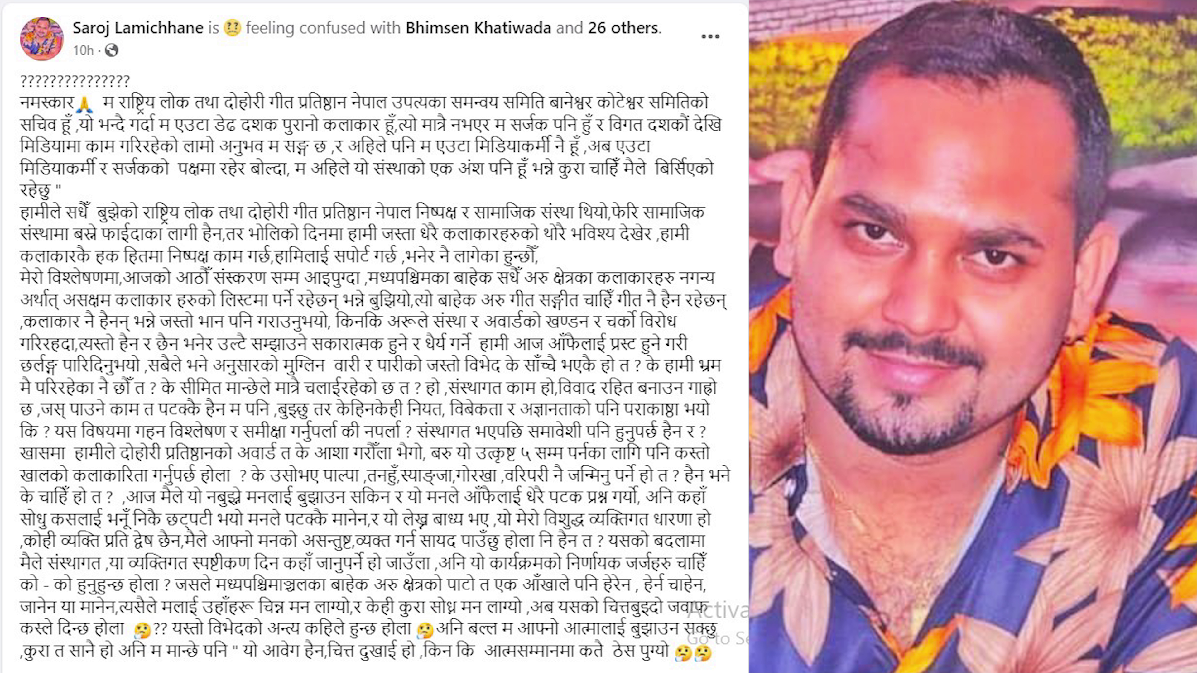 काठमाण्डौ भाद्र २५ - हजारौंको शंख्यामा सदस्यता रहेको राष्ट्रिय लोक तथा दोहोरी गीत प्रतिष्ठानको बिषयमा कलाकारहरुकै तर्फबाट बिभिन्न गुनासोहरु आइरहेका छन् । नेपाली गीत संगीतको क्षेत्र सम्वृद्धि र यस क्षेत्रमा आवद्ध कलाकारहरुको हकहितका निमित्त क्रियासिल यस संस्थामा मध्यपश्चिमका कलाकारको मात्र बाहुल्यता रह्यो, अन्य क्षेत्रका कलाकारहरु त कलाकार नै होइनन्, नेतृत्व...
