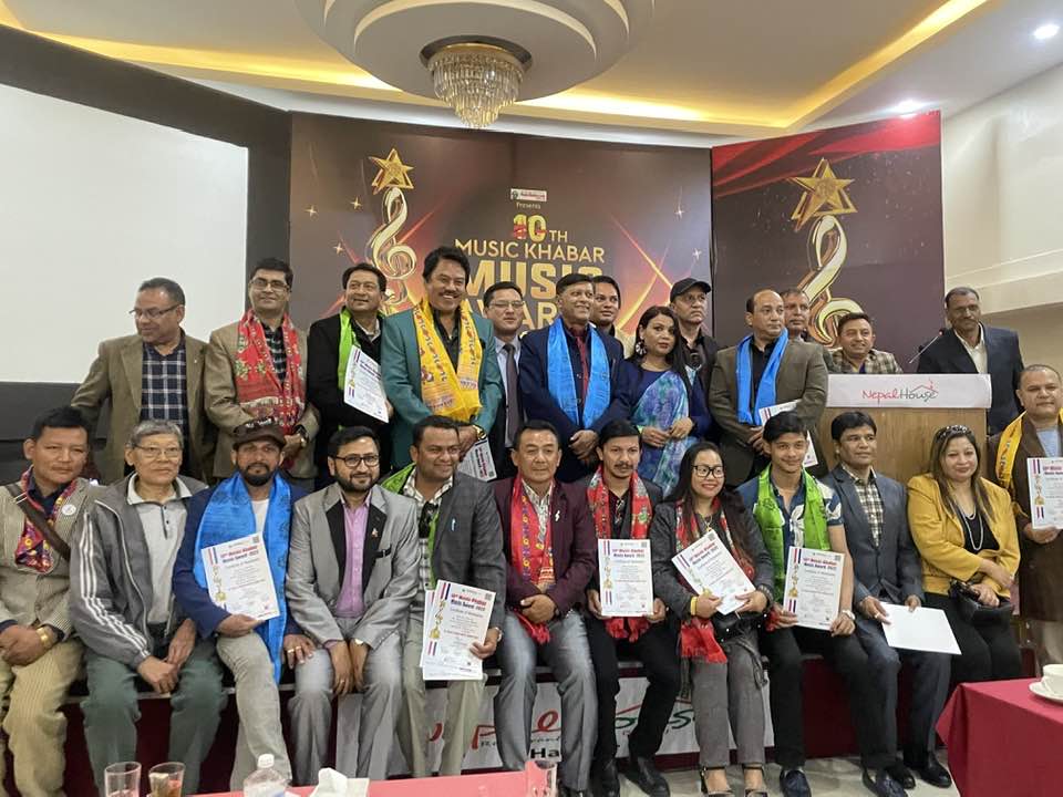 काठमाण्डौ फाल्गुन २८ - दशौं म्यूजिक खबर म्यूजिक अवार्डको मनोनयनको उत्कृष्ट पाँचभित्र पर्न सफल स्रष्टा सिर्जनालाई मनोनयनको प्रमाणपत्र प्रदान गरिएको छ । म्यूजिक खबर म्यूजिक अवार्डमा गीतसंगीतका विभिन्न ४० विधाका स्रष्टा र सिर्जनालाई मनोनयनको प्रमाणपत्र प्रदान गरिएको छ । आज काठमाडौंको हात्तिसारस्थित नेपाल हाउसको सभाहलमा आयोजित कार्यक्रममा पूर्व उपप्रधान तथा...