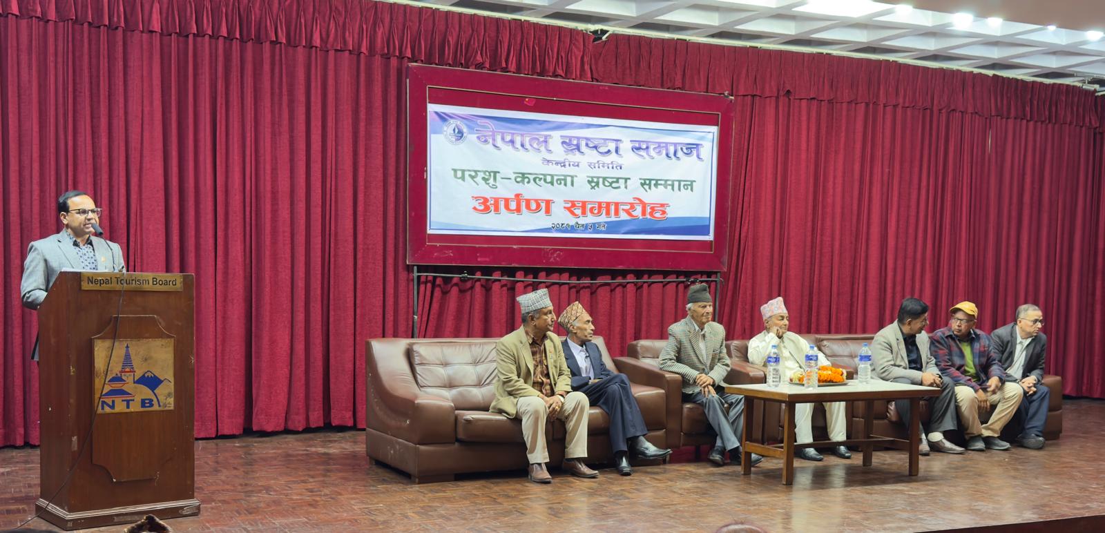 काठमाडौं । परशु-कल्पना स्रष्टा सम्मान-२०८१ द्धारा वरिष्ठ आख्यानकारद्वय गणेश रसिक र ध्रुव सापकोटा सम्मानित भएका छन् । नेपाल स्रष्टा समाजको मंगलबार आयोजित कार्यक्रममा उनीहरुलाई संयुक्त रुपमा उक्त सम्मानद्धारा सम्मानित गरिएको हो । आख्यानकारद्वयलाई जनही ५० हजार १०१ रुपैयाँको राशिसहित सम्मानपत्र प्रदान गरेको हो । नेपाली साहित्यको आख्यान क्षेत्रमा पाँच दशकभन्दा बढी समयदेखि योगदान...