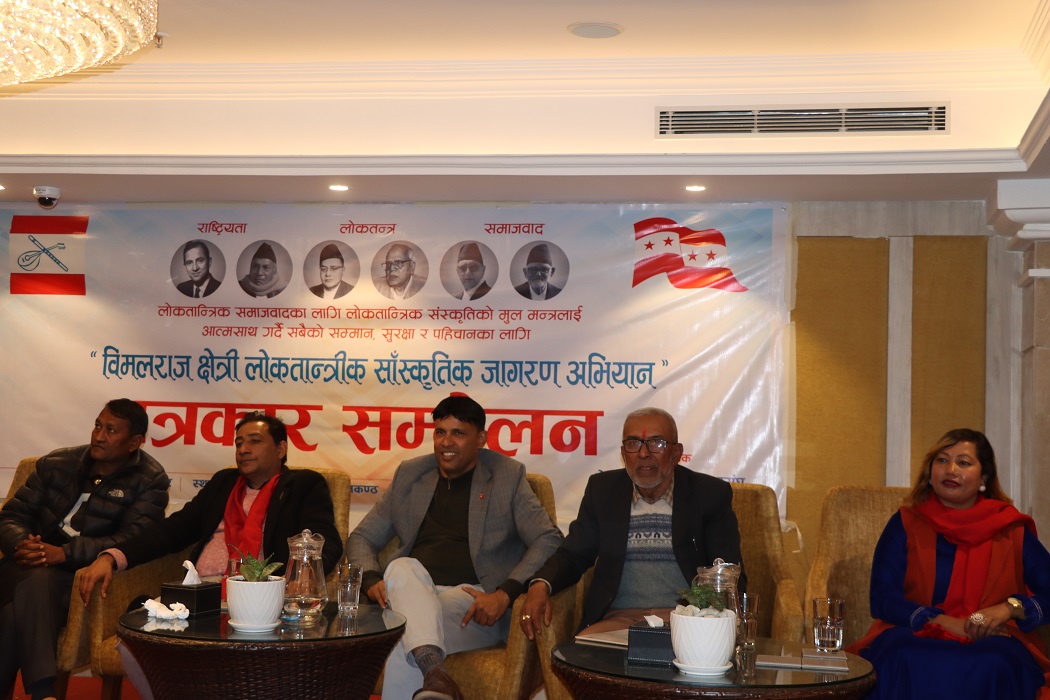 काठमाडौं। बरिष्ठ गायक विमलराज क्षेत्रीले देशभर सांगीतिक कार्यक्रम गर्ने भएका छन् । नेपाल सांस्कृतिक महासंघको आयोजनामा “विमलराज क्षेत्री लोकतान्त्रिक सांस्कृतिक जागरण अभियान” सुरु गरिएको हो। गत बिहिबार २४ गतेका दिन नेपाली कांग्रेस पार्टी कार्यालय, सानेपा, ललितपुरको प्राङ्गणमा नेपाल सांस्कृतिक महासंघका अध्यक्ष तीर्थ बहादुर थापाको अध्यक्षता र नेपाली कांग्रेसका केन्द्रिय सदस्य...
