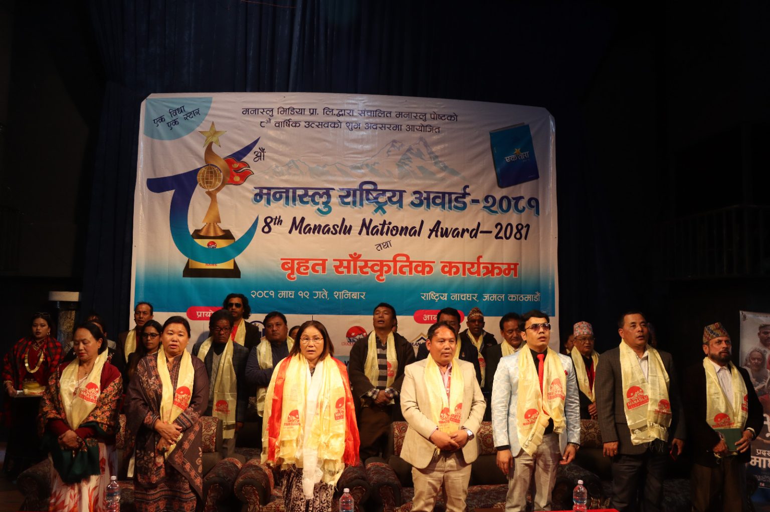 काठमाकौ । मनास्लु मिडिया प्रा।लि।द्धारा सञ्चालित “हरपल खबरको रफ्तार” मनास्लु पोष्टकोे आठौं बर्ष पुरा गरेको अवसर पारेर बिभिन्न क्षेत्रमा महत्वपुर्ण योगदान पुर्याएका व्यक्ति एवं संस्थालाई सेवाको कदर स्वरुप “एक विधा एक स्टार” “आठौं मनास्लु राष्ट्रिय अवार्ड – २०८१” राष्ट्रिय नाचघर जमलमा यहि माघ १९ गते शनिवार सम्पन्न भएको छ ।