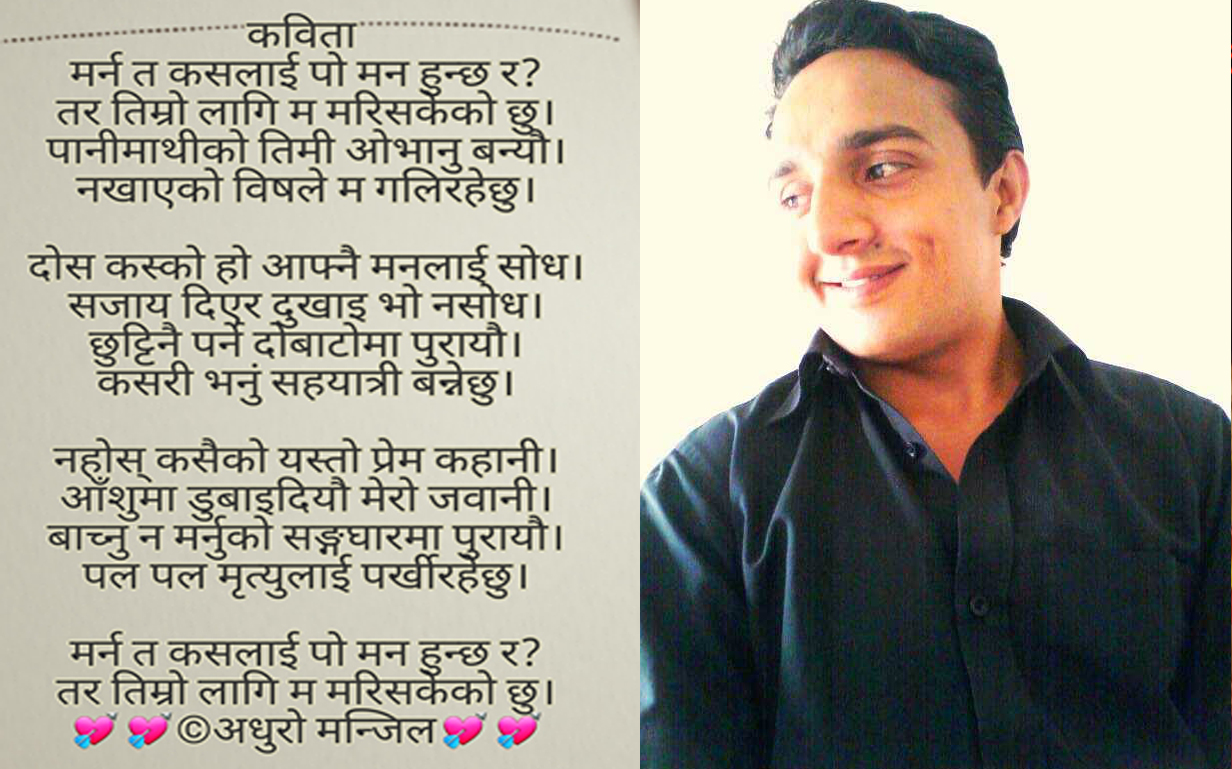 मेरै भलो चीताउछौ मै मरे भने के गरौली ! तीम्लाई नपाई आत्म हत्या गरे भने के गरौली !! गाउको मान्छे शहर पस्दा एक्लीएर रुनी मान्छे ! धर्ती बाटै म त बसाइ सरे भने के गरौली !! बाचेको छु कसम ूकान्छूु केबल तीम्रै माया पाउन ! तीमी बीनै अलपत्र परे भने के गरौली !! उर्जा मिल्ल्छ तीम्ले...